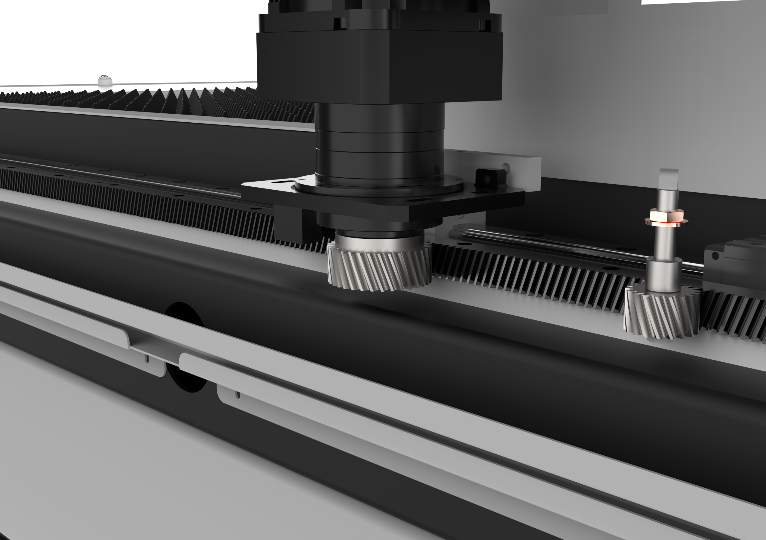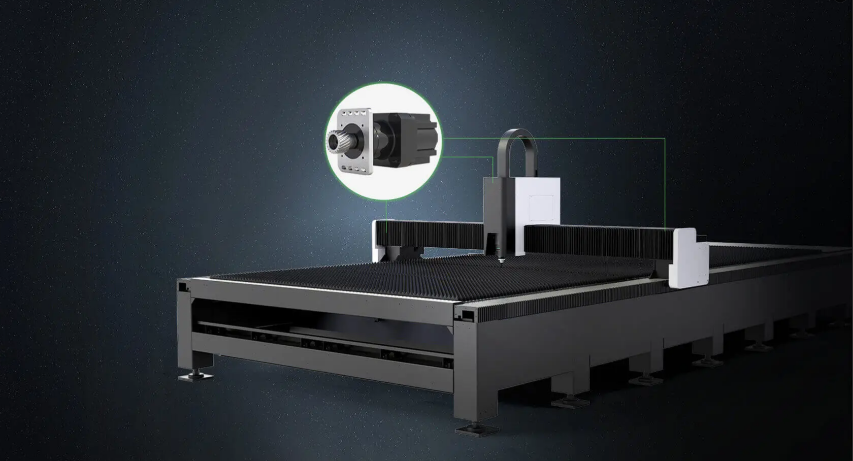 The whole machine is equipped with dual bus motors. The whole machine has a dry running speed of 120m/min and an acceleration of 1.5G, achieving leading dynamic performance.